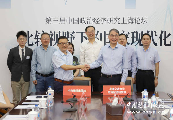 会上,上海交通大学政治经济研究院荣誉院长郑永年和中央编译出版社副总编辑潘鹏分别代表各自机构签订战略合作框架协议,双方计划建立常态化主题策划组稿机制,充分发挥彼此在学术出版方面的优势,共同打造促进政治经济理论研究、中外文化交流和国际传播的优质平台。