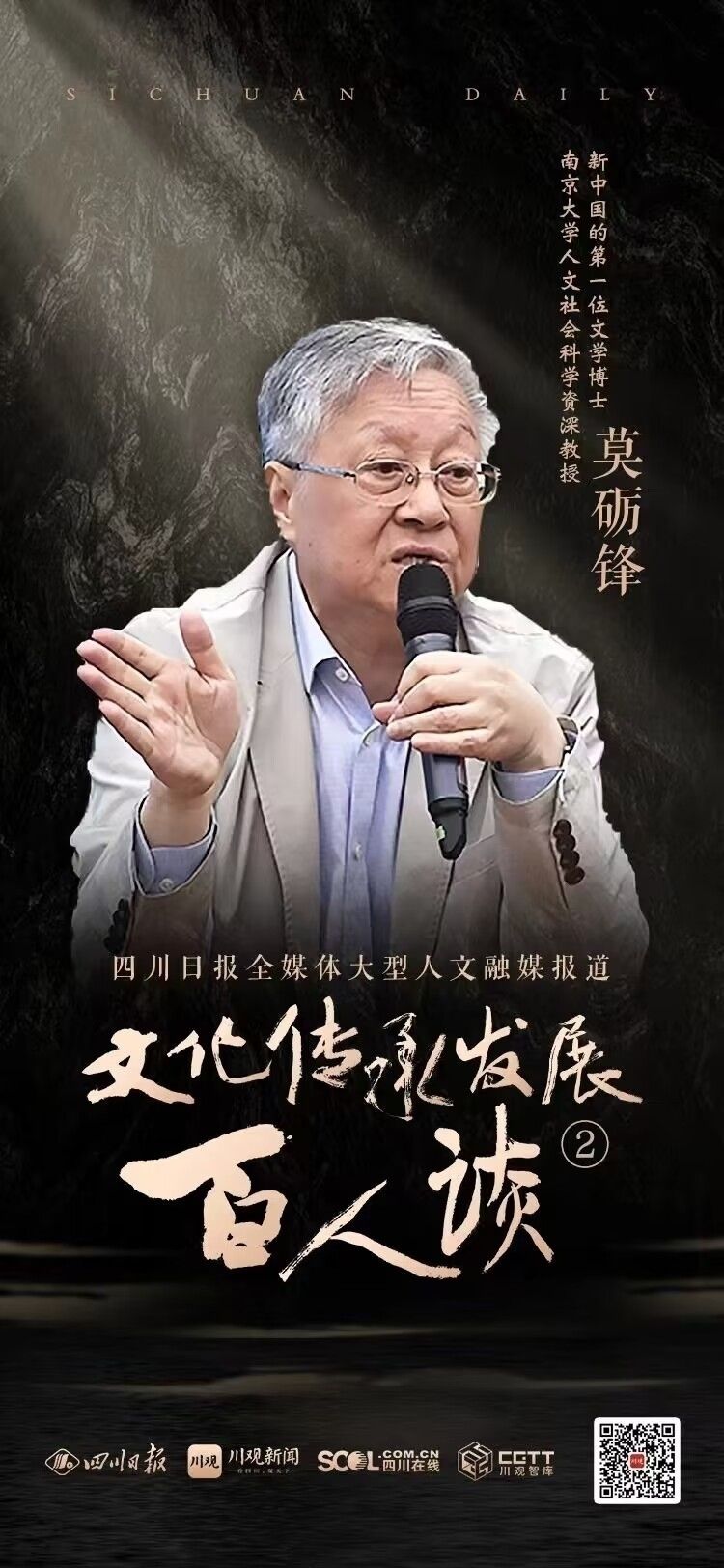 作为新中国成立后的首位文学博士,莫砺锋近年来一直通过讲座、出书,普及古典文学,传播中华优秀传统文化。他讲唐诗宋词,讲李白、杜甫、苏东坡……他的足迹遍布大江南北,曾三次登上央视《百家讲坛》,并多次入川,在杜甫草堂、三苏祠、天府官塘开坛设讲。
