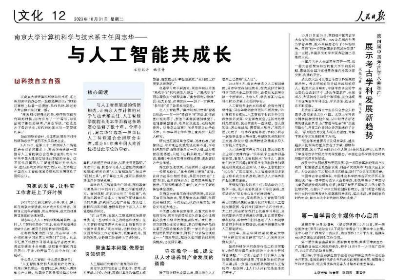 “上大一时,周老师的人工智能导引课程,用幽默风趣的语言为我们勾勒出人工智能发展版图,告诉我们要学什么和怎样学。大二时,周老师给我们上机器学习导论,总能把复杂内容讲得通俗易懂,而且贯穿整个学科脉络,帮助我们打好基础。”人工智能学院首届本科生谢龑锋说,他未来将继续从事人工智能研究。