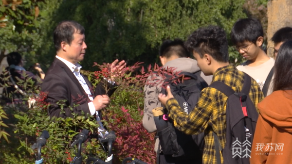 王保忠告诉记者:“这个是我们学校重要的绿化灌木——南天竹,一个特点是叶子红,第二个特点是果实红,挂果时间很长,从9月开始,一直挂到明年4月,为我们学校绿化增光添彩了。”