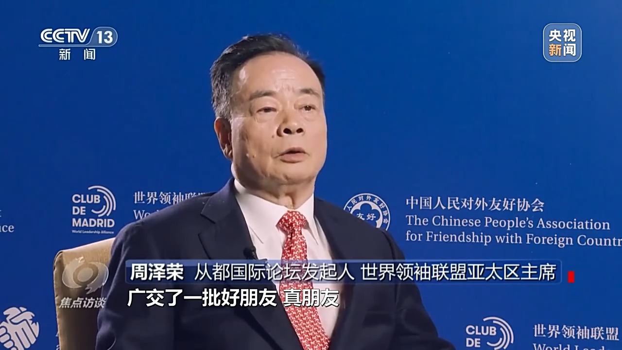 从都国际论坛发起人、世界领袖联盟亚太区主席 周泽荣:从都国际论坛自创办以来,广交了一批好朋友、真朋友,他们非常有智慧,非常有人脉,非常有高度。国际形势越是复杂,越是需要加强交流、换位思考、包容合作,民间交往灵活多样,涉及面很广,充满活力和希望。