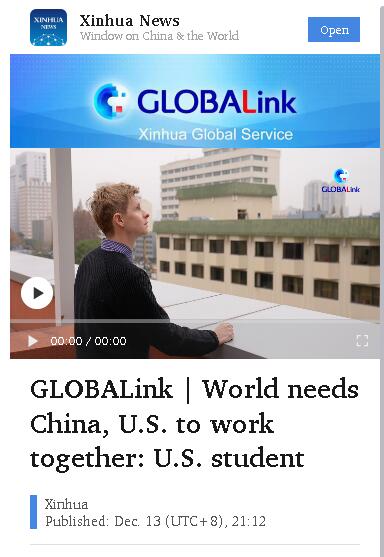 GLOBALink | World needs China, U.S. to work together: U.S. student