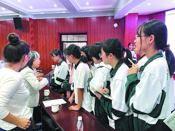 Female physicists answer questions from students during a lecture tour event in Nanjing, Jiangsu province, in October. [Photo provided to China Daily]Academician strives to make the science subject more popular to help make China a technological powerhouse, Yan Dongjie reports.