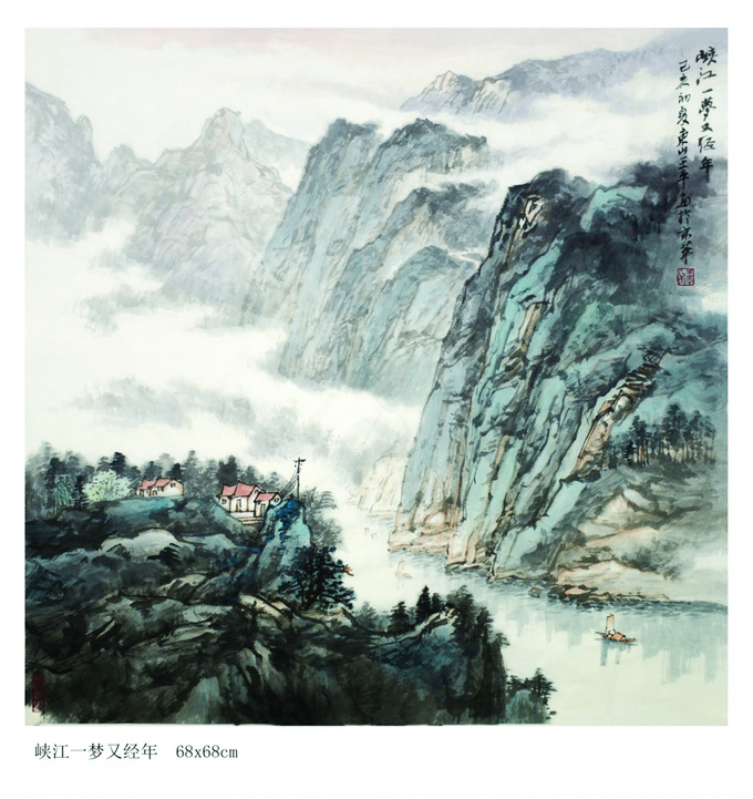 山水气韵是灵魂,生动是魅力,可以从画之品质让人心灵觉意,无需言明,全在印象!读他的这种气韵生动的山水作品,如读一首唐诗,亦如轻吟一段宋词。赤壁赋新意,借古开今!浪波芸芸去,青翠满山岗。在这如诗如画的三峡景观里泊心驻足,杳然如在丹青里!挂一件这样的山水作品在大厅上堂,当然是蓬荜生辉,魅力无穷。可以装饰万家屏障,最是雅俗共赏的新经典!这就让他的绘画作品继专业影响力之后,又拥有了非凡的审美号召力!