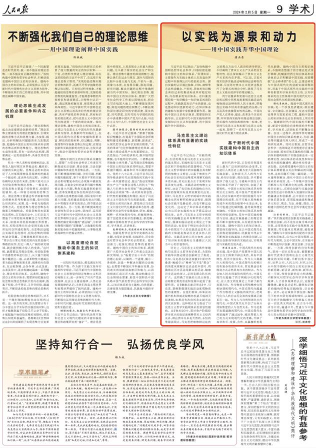 习近平总书记指出:“实践的观点、生活的观点是马克思主义认识论的基本观点,实践性是马克思主义理论区别于其他理论的显著特征。”马克思主义哲学视域中的实践概念具有鲜明的唯物主义特征,从基于物质生产的社会历史性活动维度来理解实践的本质内涵,其关注重点在于客观实际及其变化过程。实践活动的唯物主义特征,决定了知识体系的建构应当从现实的客观实际及其发展变化出发。同时,马克思主义哲学视域中的实践概念也具有鲜明的辩证法特征,强调社会实践不是静态的,而是不断运动变化的。这决定了知识体系的建构应当从历史实践的内在矛盾运动过程出发。此外,马克思主义哲学视域中的实践概念还具有鲜明的人民性特征,强调实践活动是主观见之于客观的活动,也是处于特定社会历史关系中的现实个人的实践活动总和,实践的主体就是推动历史进步的人民群众。实践活动的人民主体性,决定了知识体系的建构应当遵循以人民为中心的价值取向。