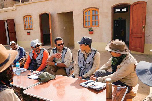 ▲中埃双方团队成员在孟图神庙遗址群发掘现场讨论发掘计划。中国社会科学院考古研究所世界考古研究室主任贾笑冰供图