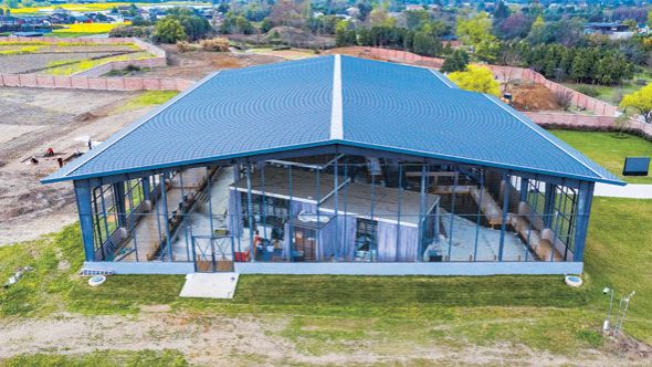 ▲这是2021年3月1日拍摄的三星堆遗址考古发掘现场保护大棚内的工作舱。新华社记者沈伯韩摄
