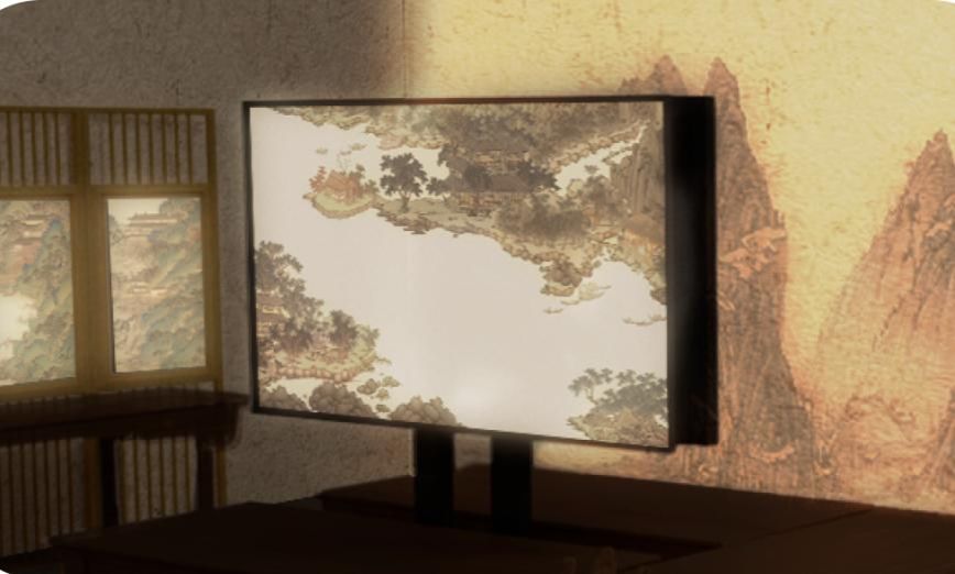 以黄公望和沈周的经典山水画为灵感,运用数字技术进行再创作,还原黄公望和沈周笔下湖光山色的雅致气韵,增添渔火、沙鸥和扁舟等中式美学元素,感受数字山水之间的生趣韵味。