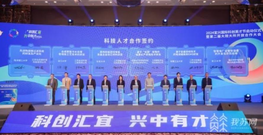 “作为产业创新主体,越来越多的宜兴企业主动深耕大院大所合作,以成果转化实现裂变式发展。”据统计,宜兴95%以上的规上工业企业与国内外相关高校院所实现了紧密“联姻”,每年实施产学研及国际合作项目超200个。围绕新能源、新材料等新兴产业,6个科技人才合作项目签约。