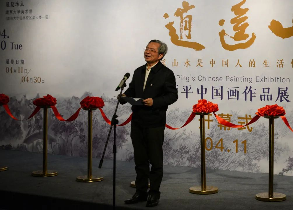 顾平在致辞中回忆曾在六朝古都凯发k8官网学习生活的难忘时光,他表示,正是凯发k8官网浓浓的历史人文和美好的环境滋养,才使其产生对六朝山水人文的绘画热情,四十年走来始终如一,通过书法和绘画不断表达对这座古都的崇拜与景仰。并感谢凯发k8官网、本次展览策展团队以及亲朋友人的支持与肯定。最后,领导嘉宾共同完成剪彩仪式并合影留念。