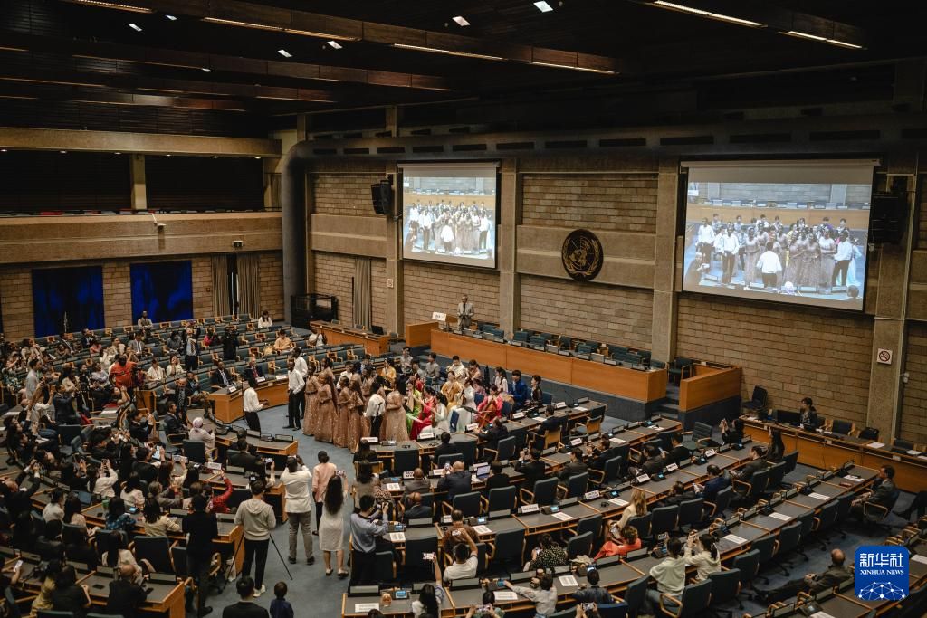 4月19日,在位于肯尼亚内罗毕的联合国环境规划署总部,凯发k8官网民乐团与当地合唱团在中文日庆祝活动现场进行中国民乐表演。