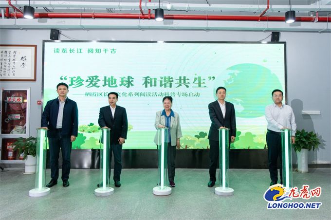 在活动尾声,与会领导登台共同启动“珍爱地球,和谐共生”——栖霞区长江文化系列阅读活动科普专场。