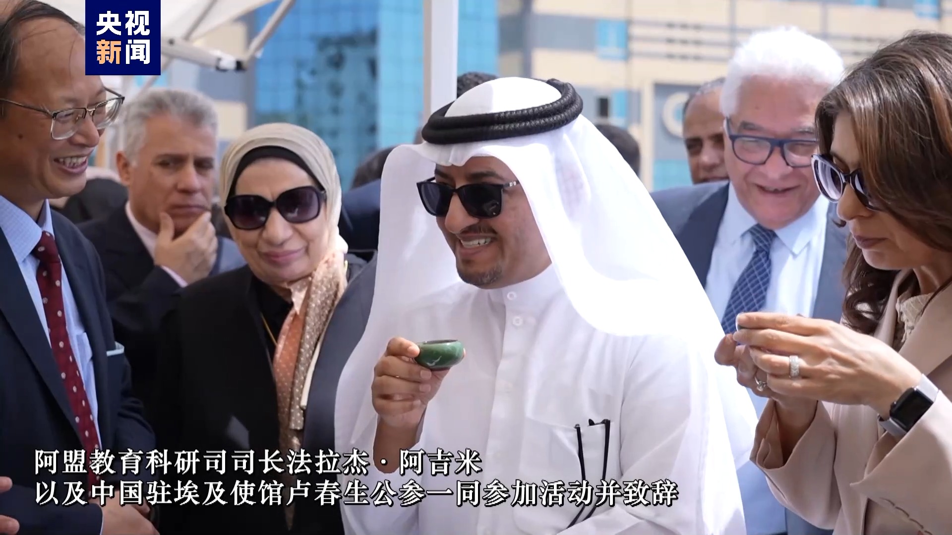 阿盟教育科研司司长法拉杰·阿吉米以及中国驻埃及使馆卢春生公参一同参加活动并致辞。