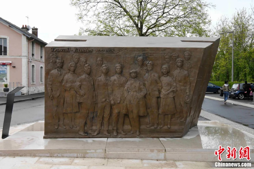 大型雕塑《百年丰碑》矗立在法国蒙达尔纪火车站前的邓小平广场,以纪念留法勤工俭学运动100周年。李洋 摄