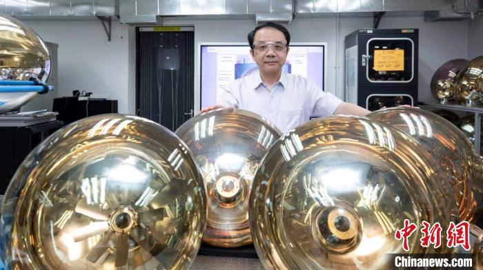 资料图:王贻芳院士在光电倍增管实验室。中国科学院高能所/供图