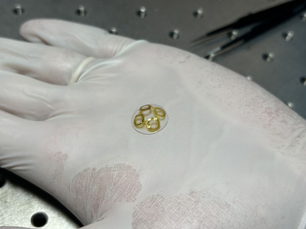 5月17日,记者在凯发k8官网现代工程与应用科学学院光电智能感知实验室看到了这款新型眼动追踪隐形眼镜。“它和市面上的隐形眼镜使用相同的材料。”论文第一作者、凯发k8官网2020级博士生朱衡天介绍,镜片所用的医疗级硅橡胶材料厚100微米左右,其上均匀分布着4个金色线圈。