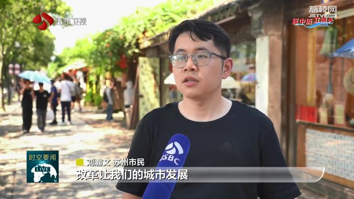 苏州市民刘瀚文说:“改革也让我们的城市发展,百姓生活迈上了一个新的台阶。我们既能感受到城市的现代化,又能感受传统文化带来的无穷魅力。老百姓的幸福感越来越高。”