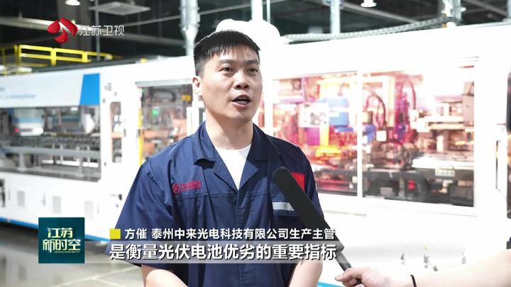 泰州中来光电科技有限公司生产主管方催说:“光电转换效率是衡量光伏电池板优劣的重要指标。为了不断提高转换效率,我们组建了一支452人的科研团队,先后投入将近12亿元用于产品研发。我们公司的N型光伏电池产品的转换效率能达到26.5%,比市场平均值高出一个百分点。我们的产品深受中东、欧洲、东南亚等地欢迎,有力推动了当地的绿色能源变革。”