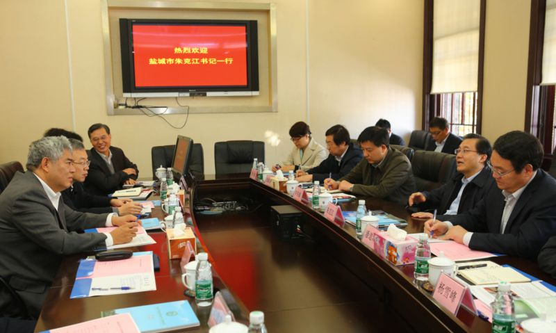 11月13日,盐城市委书记朱克江一行来我校访问,就盐城环保科技产业建设进行座谈。我校党委书记洪银兴、副校长吕建,中国工程院院士张全兴,以及科技成果转化中心、环境学院相关负责人出席座谈会。