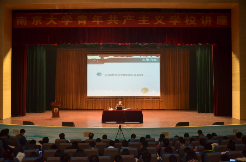 杨忠教授介绍了耶鲁大学在领袖培养方面的经验与成就,将“耶鲁精神”概括为永远强调对社会的责任感、蔑视权威、追求自由和崇尚独立人格。他指出,耶鲁所采用的公开宣称自己的理想和价值、实行通识教育、住宿学院制、发挥学生社团的作用、提倡学生参加社区活动等方式和做法非常值得我们借鉴。之后,杨忠教授对我校领袖型人才培养的现状及取得的成绩做了简要介绍,同时指出了我校领袖型人才培养方面有待提高的地方,其中“最大的问题在于对领导能力的培养没有得到老师和同学的足够重视”。