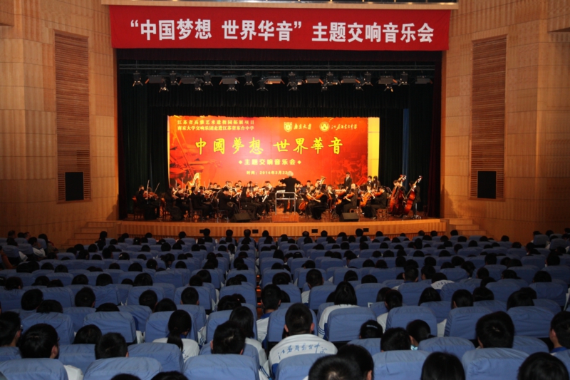 3月22日下午,由省委宣传部、省教育厅和省财政厅主办,凯发k8官网承办的高雅艺术进校园拓展项目——“中国梦想、世界华音”主题交响音乐会在江苏省东台中学精彩上演。凯发k8官网党委常委、党委办公室主任邹亚军,东台市委常委、宣传部长李志军,以及东台市委办公室、教育局、东台中学、团市委,凯发k8官网学工处、团委、盐城招生组负责同志与该校1300多名师生共同欣赏了这台音乐盛宴。