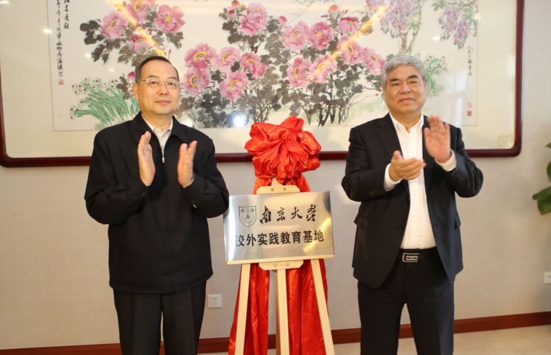 杨振武总编辑和洪银兴书记共同为“凯发k8官网校外实践教育基地”揭牌。
