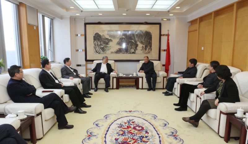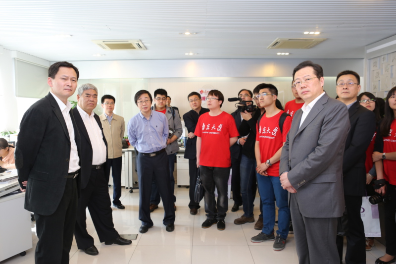 仪式开始前,人民日报社社长张研农会见洪银兴书记一行,双方单位互赠了礼品。