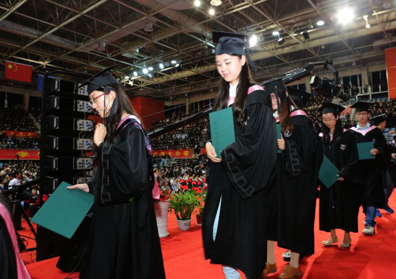 全体毕业生分三个批次上台接受学位授予。学校领导、两院院士、人文社会科学荣誉资深教授、人文社会科学资深教授、校学位评定委员会委员、院系领导和院系学位评定委员会委员等为3479名全日制本科生、81名留学生授予学位。