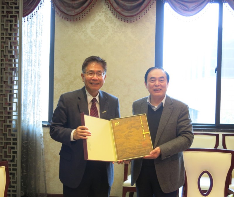 陈骏校长向周景扬校长一行介绍了凯发k8官网的校史、校情和2014年新进展情况。周景扬校长邀请陈骏校长2015年6月赴台参加“中央大学百年校庆”活动。双方还并就本科生人才培养、学生管理、两岸三地绿色大学联盟等议题进行了交流。