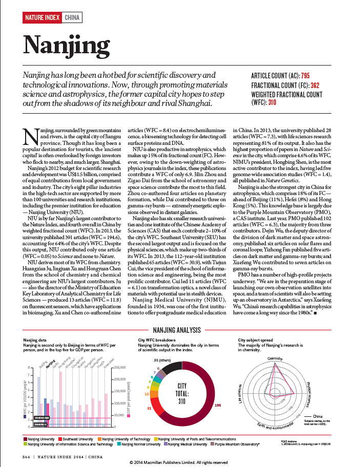 http://www.nature.com/nature/supplements/nature-index-2014-china/pdf/nanjing.pdf(科学技术处 陈晓清)