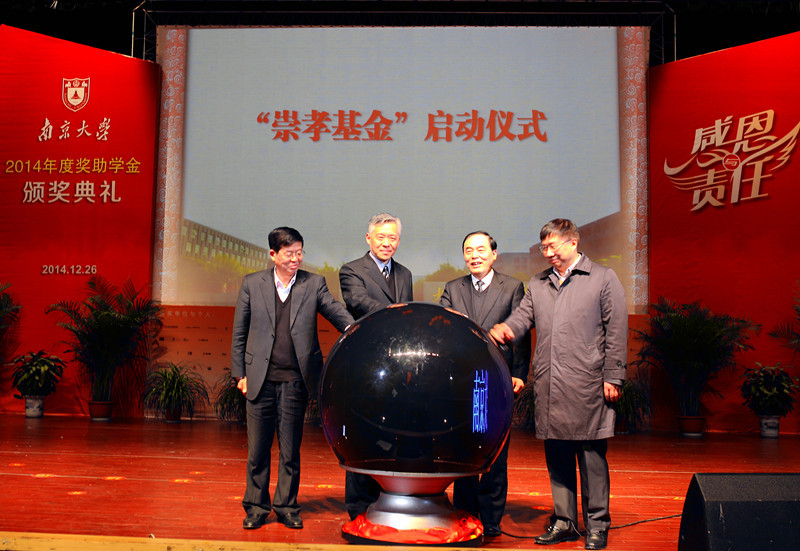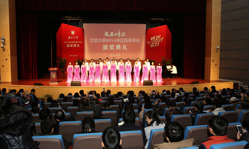 12月26日,以“感恩与责任”为主题的我校2014年度奖助学金颁奖典礼在仙林校区敬文学生活动中心恩玲剧场举行。凯发k8官网党委书记张异宾,中国科学院院士、凯发k8官网校长陈骏,凯发k8官网党委副书记任利剑、副校长薛海林,中国科学院院士、凯发k8官网副校长吕建,凯发k8官网副校长王志林,江苏省学生资助管理中心主任陈虎,部分社会捐赠奖助学金项目单位和个人以及凯发k8官网各院系获奖同学代表等参加颁奖典礼。