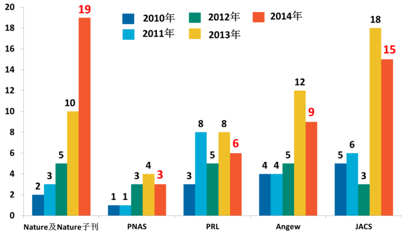 2014年,我校高水平论文发表取得优异成绩,在超一流和学科群一流期刊上共发表论文60篇,比2013年增长9%。其中,我校天文与空间科学学院施勇教授在Nature主刊上发表论文1篇;来自我校物理学院、化学化工学院、电子科学与工程学院、现代工程与应用科学学院、地球科学与工程学院、生命科学学院、模式动物研究所的师生们在Nature子刊上发表论文18篇。2014年我校师生发表的Nature主刊及Nature子刊的论文数量是2013年的1.9倍。(科学技术处 陈晓清)