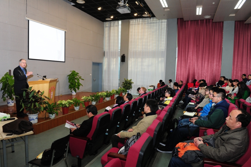 瓦格纳校长结合爱默蕾大学的教育理念和经验就大学教育的广泛性、目的性、系统性以及学生就业选择性等方面系统解析了当代社会趋于国际化的大学教育问题。他认为,大学教育的广泛性,着重于强调高校专业的可选择性,高校要尽可能地提供平台让学生在更广的范围内根据自己的兴趣爱好选择专业。同时,大学教育的优越性在某种程度上体现在学生就业的高度选择性。报告内容深入浅出,生动有趣,赢得学生们的阵阵掌声。在交流讨论环节,不少学生积极提问,认真把握这难得的交流机会。