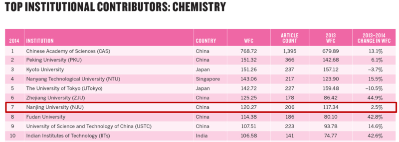 图4: 2015自然指数化学学科亚太地区前10位机构名单