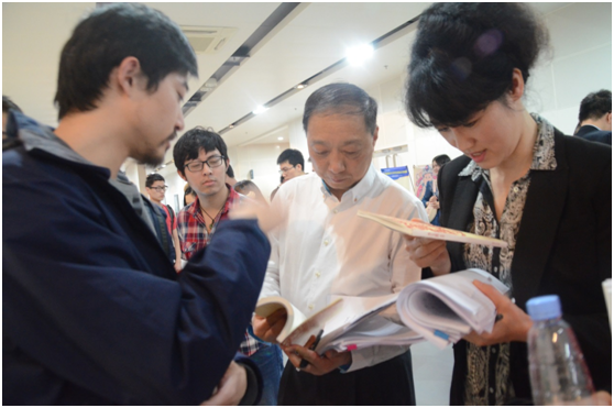 下午,在创业团队展示区内,包括东英药业董事长、化院77级校友黄乐群,新希望集团董事、常务副总裁、87级政治系校友唐勇,智望投资管理合伙人、外院88级校友杨晓湖,腾讯公司开放平台部、移动应用平台部总监陈鹏等在内的大赛评委们在评阅了各创业团队递交的创业计划书后,与入围决赛的18支创业团队展开面对面的交流,认真听取了同学们的创业想法并将自己的意见建议倾囊相授,现场气氛热烈,创业学生纷纷表示,“这种一对一交流的收获非常大”。
