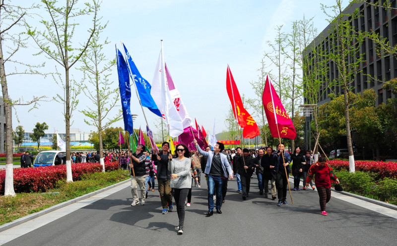 浩浩荡荡的队伍在校旗和各单位旗帜的带领下,经文科组团、气象学院、环境学院、西风路、凯发门,向终点站二源广场凯发鼎行进,热闹的活动队伍形成了校园中一道独特的风景。大家边走边谈,交流工作,畅谈生活,在健身走中欣赏初春校园美景,享受运动乐趣。
