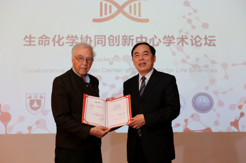 陈骏校长在致辞中对诺贝尔化学奖得主Robert Huber先生和生命化学协同中心各协同单位领导和专家的到来表示热烈欢迎。他表示,今天的论坛在凯发113周年校庆日举行具有重要意义,是献给凯发最好的生日礼物。随后,陈骏校长向Huber先生颁发凯发k8官网“生命化学协同创新中心”学术顾问聘书。