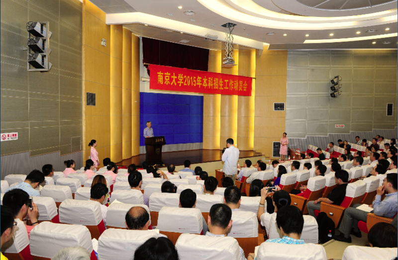 6月10日,我校2015年本科招生工作动员会在鼓楼校区逸夫馆报告厅召开,校党委书记、本科招生工作委员会主任张异宾,校党委副书记、纪委书记任利剑,校党委常委、副校长王志林,校本科招生工作委员会成员、相关部处负责人、各院系主要负责人、金陵学院招生负责人、国防生选培办负责人、本科招生办公室工作人员和各地招生组招生人员与会。会议分总结动员和实务培训两部分进行,分别由任利剑副书记和王志林副校长主持。