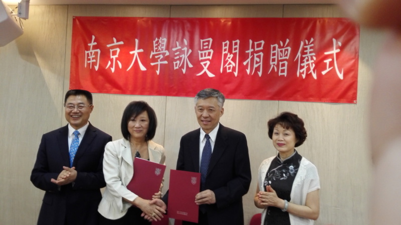 薛海林副校长介绍了邓杨咏曼女士及“咏曼阁”的基本情况。邓杨咏曼女士是香港太平绅士、华孚石油有限公司、合孚行有限公司董事长,香港慈善组织“仁爱堂”前主席,香港铜紫荆星章及荣誉勋章获得者,长期致力于慈善及公益事业。邓杨咏曼女士此次捐资500万元支持凯发k8官网仙林校区教师活动中心即“咏曼阁”的建设,该中心主要为凯发k8官网广大教师之间的深入交流提供良好的设施和环境,预计2016年落成。