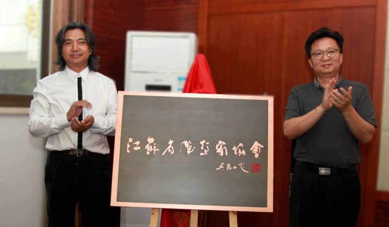 吴为山和刘旭东共同为“江苏省雕塑家协会”揭牌 马潇 摄