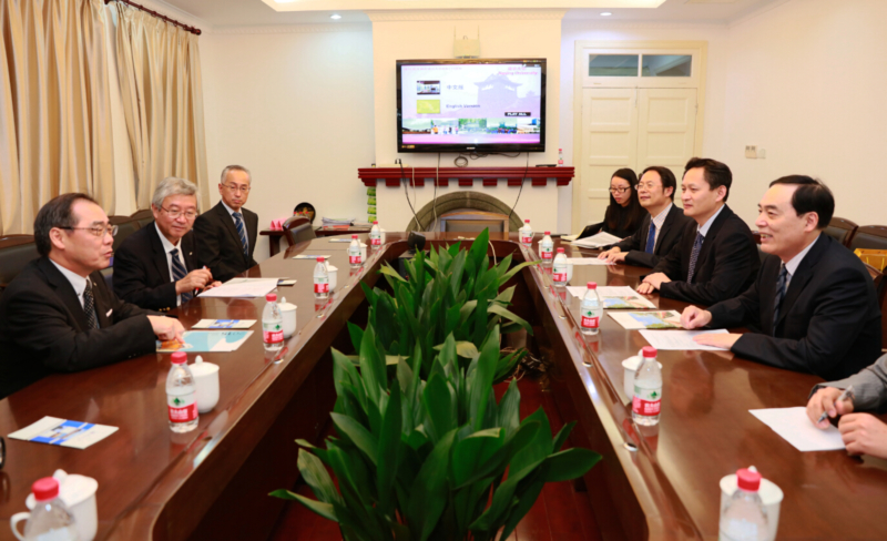松尾清一校长简要介绍了在任期间即将实施的“松尾计划”,将着重推进名古屋大学教学改革,提高学术科研能力,加快发展国际化,注重社会贡献,推动产学研相结合。他希望与我校加强师生交流及信息交流,相互学习,共同发展。渡边芳人副校长继而向我校分享了名古屋大学在国际化发展方面的宝贵经验,也希望能继续加强与我校的交流与合作。