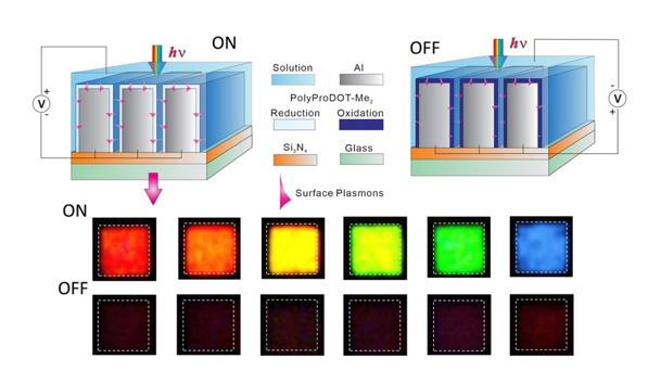 凯发k8官网,NIST以及Sandia国家实验室的国际合作研究团队利用自身在纳米光子学与材料合成研究领域中的多年积累,另辟蹊径,利用亚波长金属结构中的存在表面等离子体效应同时解决了以上关于光调制对比度,响应时间以及多波长选择性调制的问题。通过亚波长金属结构控制入射光与表面等离子体之间的有效能量转化,在多波长范围内首次实现了具有超过90%光调制对比度以及小于20毫秒响应时间的聚合物电致变色器件。这一研究对于进一步提升器件光学性能,降低器件材料复杂度以及扩展高速动态应用起到了非常关键的作用,从而对于推进电致变色器件的实用化进程有着重要的现实意义。该技术已经申请了相关专利。