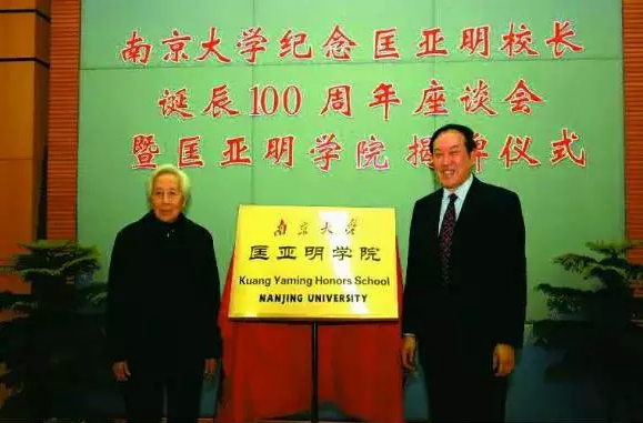 (2006年蒋树声校长与丁莹如教授(匡老夫人)共同为匡亚明学院揭牌)