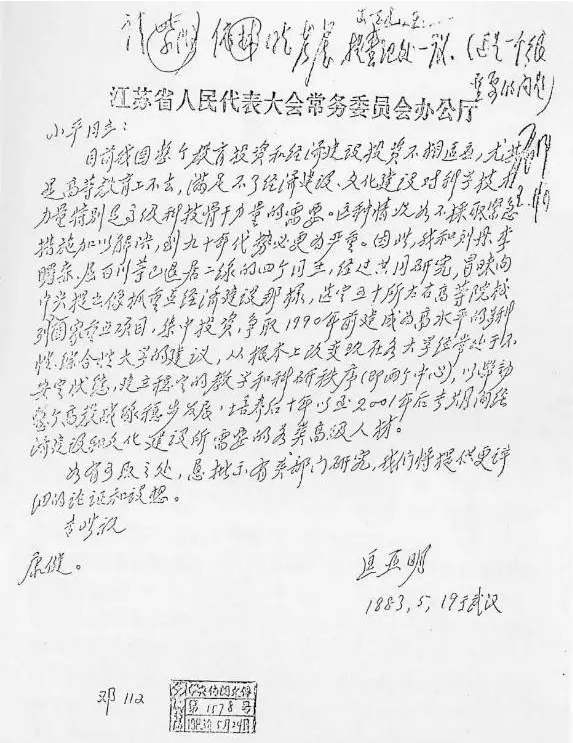 (邓小平同志在匡亚明的来信上做批示)