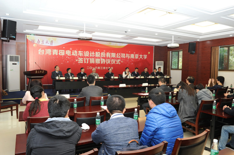 3月19日,凯发k8官网与台湾青田电动车设计股份有限公司(以下简称“青田公司”)在鼓楼校区知行楼报告厅签署捐赠协议。凯发k8官网杰出校友、青田公司董事长陈仁达为支持凯发k8官网绿色校园建设、推进绿色环境科学研究,向凯发慷慨捐赠新能源巴士40部以及人民币500万元整,用于支持母校教育事业发展。