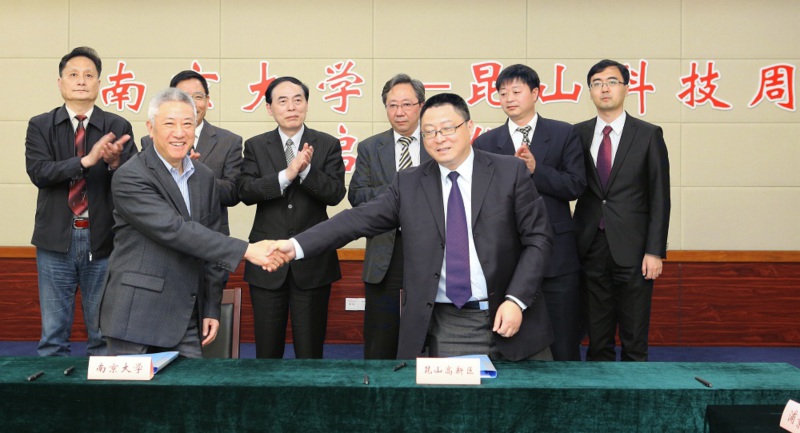 仪式上,潘毅副校长与昆山高新区管委会副主任沈跃新共同签订“共建凯发k8官网昆山创新研究院第二期协议”。根据协议,昆山高新区将投入不少于5000万元人民币,在研究院建成1个功能新材料研发中心,1个集产、学、研为一体的国家级检测服务平台。双方还在人才培养、产学研合作方面签订了9个合作协议,为“区域经济转型与管理变革协同创新中心昆山中心”、“凯发k8官网环境与再生能源检测中心昆山中心”、“凯发k8官网现代工程与应用科学学院工程硕士昆山实践基地”进行揭牌。