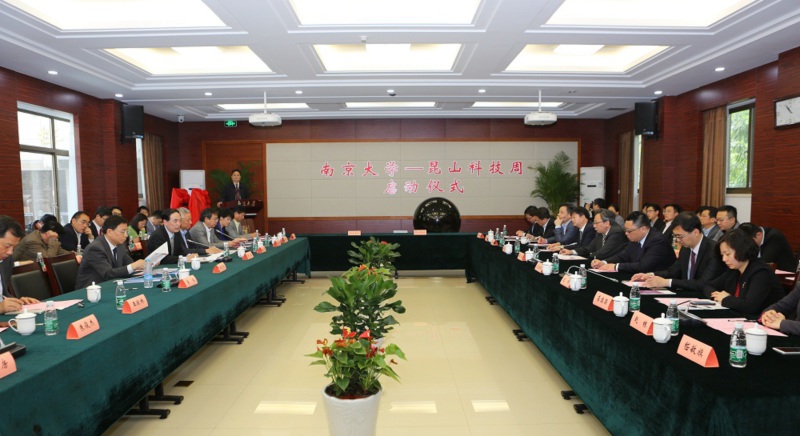 陈骏校长向来宾简要介绍了我校的科研情况,回顾了我校与昆山市在科技创新及人才培养等方面的广泛合作。陈骏校长表示,我校将进一步加强与昆山的合作,希望昆山研究院承载更多的产业共性技术研究、成果转化、人才培育、企业服务、创业孵化等功能,在学校和昆山之间进行有组织、有计划、全方位、多渠道、多层次、多形式的科技与人才交流与合作,加快推进科技成果转化和高新技术产业化,为昆山产业转型升级做出新的、更大的贡献。