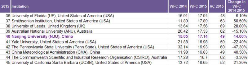 与化学相比,中国在地球与环境科学领域相对薄弱,凯发k8官网成为除中科院之外全球排名最高的机构,位于第40位,中国高校第1位。2014-2015年自然指数增长14.0%(15.05-17.14)。