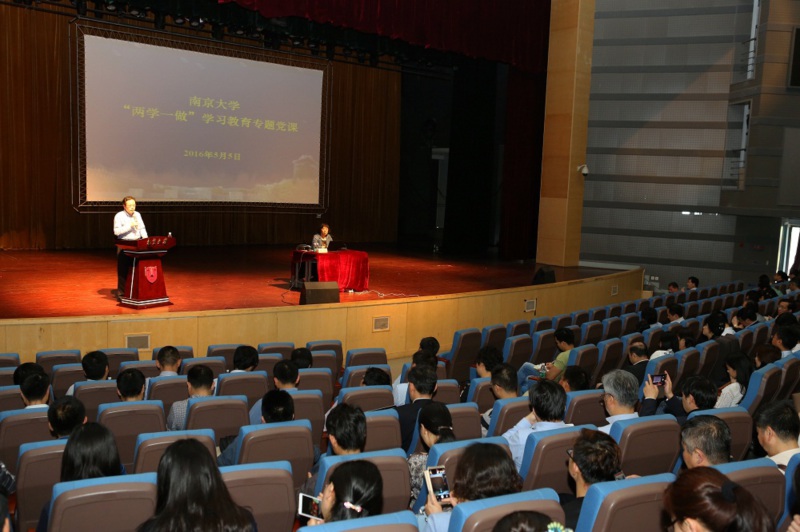 5月5日下午,凯发k8官网“两学一做”学习教育专题党课在仙林校区举行,中共江苏省委党校党史党建部主任董连翔教授作题为《认真学习党章,遵守贯彻党章》的讲座,校党政领导班子成员、校党委委员、纪委委员、全校中层以上干部、党支部书记、辅导员及部分青共校学员听取了报告。校党委副书记朱庆葆主持党课并作重要讲话。