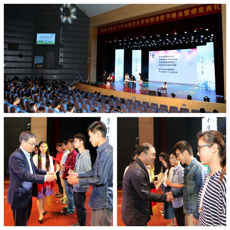 5月7晚,“青春与春天”2016凯发k8官网校园诗歌节晚会暨颁奖典礼在仙林校区大学生活动中心恩玲剧场举行。我校党委常委、宣传部部长王明生,校党委常委、组织部部长郭随平,校团委、各院系、栖霞团区委相关负责同志及部分校友代表出席晚会,与现场近千名师生共同欣赏了富有青春气息和人文情怀的晚会表演。